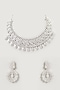 House of Aster presents a white finish necklace studded with white faux diamonds, set in mixed metal. It is paired with a matching pair of earrings. Elevate your style with our Necklace Set with any ethnic attire for a special occasion.