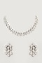 House of Aster presents a white finish necklace studded with white faux diamonds, set in mixed metal. It is paired with a matching pair of earrings. Elevate your style with our Necklace Set with any ethnic attire for a special occasion.
