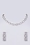 Featuring a white finish necklace studded with zircons and faux diamonds, set in mixed metal. It is paired with a matching pair of earrings.