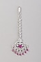 House of Aster presents a white finish maang tikka studded with zircons and red stones, set in mixed metal. This maangtikka is a testament to refined taste and timeless style, ideal for festive occasions or engagement ceremonies.