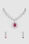 White Finish Zircon & Ruby Synthetic Stones Necklace Set