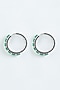 Featuring a pair of white finish hoop earrings studded with faux diamond and green stones, set in mixed metal.