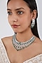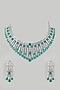 Featuring a white finish necklace studded with green faux diamonds, set in mixed metal. It is paired with a matching pair of earrings.