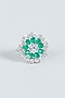 Featuring a white finish floral ring studded with green stone and faux diamonds, set in mixed metal.
