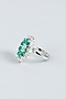 White Finish Green Stone Floral Ring