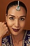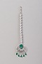 House of Aster presents a white finish maang tikka studded with zircons and green stones, set in mixed metal. This maangtikka is a testament to refined taste and timeless style, ideal for festive occasions or engagement ceremonies.
