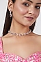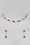 Featuring a white finish sleak choker necklace studded with faux diamonds and red stones, set in mixed metal. It is paired with a matching pair of earrings.