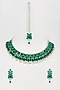 House of Aster presents a white finish choker necklace studded with white and green faux diamonds, set in mixed metal. It is paired with a matching pair of earrings and maangtikka. Elevate your style with our Necklace Set with any ethnic attire for a special occasion.