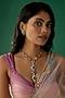 House of Aster presents a white finish long necklace studded with zircons and synthetic emeralds, set in mixed metal. It is paired with a matching pair of earrings. Whether you wear it on a special occasion or pair it with your favourite ethnic attire, our Jewellery Set will effortlessly elevate your style and make you the centre of attention.