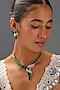 House of Aster presents a white finish necklace studded with zircons and emerald synthetic stones, set in mixed metal. It is paired with a matching pair of earrings. This necklace set is a testament to refined taste and timeless style, ideal for festive occasions or wedding ceremony