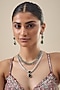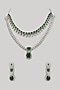 House of Aster presents a white finish necklace studded with zircons and emerald synthetic stones, set in mixed metal. It is paired with a matching pair of earrings. This necklace set is a testament to refined taste and timeless style, ideal for festive occasions or wedding ceremony.