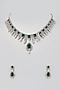 House of Aster presents a white finish necklace studded with zircons and emerald synthetic stones, set in mixed metal. It is paired with a matching pair of earrings. This necklace set is a testament to refined taste and timeless style, ideal for festive occasions or wedding ceremony