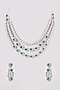 White Finish Zircon & Green Stone Layered Necklace Set