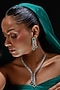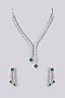 House of Aster presents a white finish necklace studded with zircons and green stones, set in mixed metal. It is paired with matching pair of earrings. Embrace timeless elegance with this exquisite necklace set.