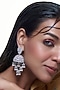 House of Aster presents a pair of white finish jhumka earrings studded with zircons, set in mixed metal. These earrings are a testament to refined taste and timeless style, ideal for festive occasions or wedding ceremonies.