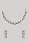 House of Aster presents a white finish necklace studded with zircons, set in mixed metal. It is paired with a matching pair of earrings. This necklace set is a testament to refined taste and timeless style, ideal for festive occasions or wedding ceremony.