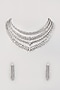 House of Aster presents a white finish necklace studded with zircons, set in mixed metal. It is paired with a matching pair of earrings. This necklace set is a testament to refined taste and timeless style, ideal for festive occasions or wedding ceremony