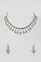 House of Aster presents a white finish necklace studded with zircons, set in mixed metal. It is paired with a matching pair of earrings. This necklace set is a testament to refined taste and timeless style, ideal for festive occasions or wedding ceremony
