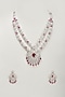 House of Aster presents a white finish long necklace studded with zircons and red stones, set in mixed metal. It is paired with a matching pair of earrings. Elevate your style with our Jewellery Set with any ethnic attire for a special occasion.