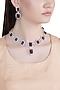 Featuring a white rhodium plated necklace studded with faux diamonds and red stones, set in mixed metal. It is paired with a matching pair of earrings.