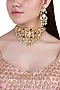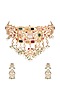 Featuring a yellow rhodium plated navratna choker neckalce with pearls, set in mixed metal. It is paired with matching pair of earrings.