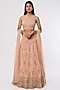 Featuring a blush pink lehenga in raw silk, crepe, and net base with sequins embroidery. It is paired with an embroidered blouse and a dupatta. Accentuate this designer lehenga with a pair of heels and statement jewellery for your wedding/sangeet/engagement/trousseau look.