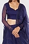Featuring a midnight blue lehenga in raw silk organza base with embroidery. It is paired with a matching blouse and a dupatta. Accentuate this designer lehenga with a pair of heels and statement jewellery for your wedding/sangeet/engagement/trousseau look.
