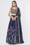 Navy Blue Georgette & Silk Jaal Embroidered Lehenga Set