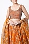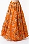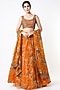 Featuring an orange lehenga in crepe and silk georgette base with floral print. It is paired with a matching blouse and a dupatta. Accentuate this designer lehenga with a pair of heels and statement jewellery for your wedding/sangeet/engagement/trousseau look.