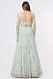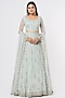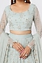 Featuring a sky blue lehenga in net and crepe base with sequins embroidery. It is paired with an embroidered blouse and a dupatta. Accentuate this designer lehenga with a pair of heels and statement jewellery for your wedding/sangeet/engagement/trousseau look.