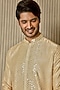 Featuring a beige kurta in jacquard silk base with mirror embellishments. It is paired with pyjama pants. Perfect wear for a festive occasions.