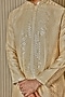 Beige Jacquard Silk Mirror Embellished Kurta Set