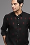 Featuring a black shirt in pure irish linen base with tribal resham hand embroidery.