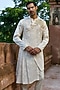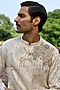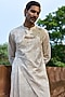 Featuring a butter yellow sheer kurta in organza base with moti hand embellishments and jaal embroidery. It is paired with pyjama pants. Style it with kolhapuri sandals for a festive occasion, wedding, sangeet or engagement ceremony.