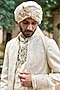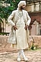 Cream Jacquard & Chanderi Moti Embroidered Sherwani Set