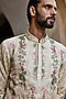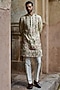 Featuring a golden shimmer kurta in tissue base with dori motifs, cutdana and thread hand embroidery. It is paired with pyjama pants. Style it with kolhapuri sandals for a festive occasion, wedding, sangeet or engagement ceremony.
