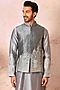 Featuring a grey bundi jacket in raw silk base with abstract embroidery. It is paired with a cotton silk embroidered kurta and pyjama pants. Perfect wear for a festive occasion or pre-wedding ceremonies.