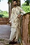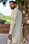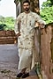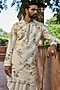 Featuring an ivory kurta in raw silk base with hand embroidery. It is paired with pyjama pants. Style it with kolhapuri sandals for a festive occasion, wedding, sangeet or engagement ceremony.