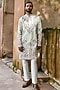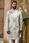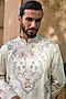 Featuring a light grey shimmer kurta in tissue base with dori, motifs and cutdana embroidery. It is paired with pyjama pants. Style it with kolhapuri sandals for a festive occasion, wedding, sangeet or engagement ceremony.