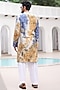 Featuring a mustard and blue kurta in pure linen base with tie-dye, sequins and resham embroidery. It is paired with pants. Perfect wear for festive occasions.