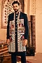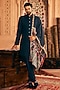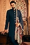 Featuring a navy blue indo-western jacket in cotton silk base with patch work and pintucks detail. It is paired with a kurta and pants. Perfect wear for a wedding or sangeet ceremony.