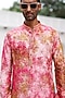 Featuring a pink kurta in pure linen base with tie-dye and sequins embroidery. It is paired with pants. Perfect wear for festive occasions.