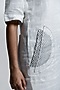Featuring a white mini dress in cotton linen base with block print and twin layered organza D-shape pocket.