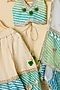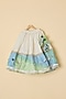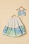 Off-White & Blue Cotton Mirror Embroidered Leheriya Lehenga Set For Girls