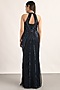 Featuring a blue gown in poly tulle base with sequins and beads hand embellishments, including a halter neckline.