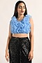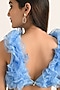 Featuring a blue ruffled top in organza base. Style it with denim jeans, hoop earrings and sandals for a complete look.