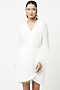 Featuring an ivory overlap dress in faux fur base with puffed balloon sleeves. Style it with dangler earrings and heels for a complete look.