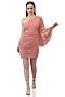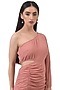 Featuring a nude pink one-shoulder ruched dress in poly georgette base with a side cut-out and a cape sleeve.