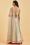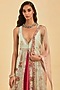 Featuring a green anarkali in organza silk base with zardosi and aari embroidery. It is paired with a contrasting fuchsia skirt and a pink net dupatta.