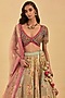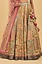Featuring a green lehenga in silk base with zardosi hand embroidery. It is paired with a contrasting blouse and an organza dupatta.
